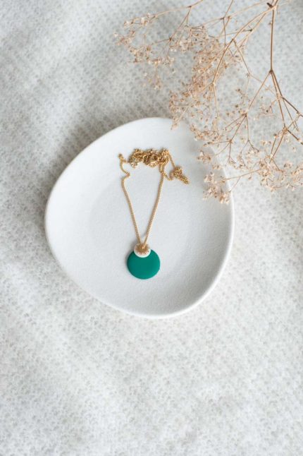 Ces colliers sont des colliers fantaisie à porter aussi bien au quotidien que pour des occasions particulières. Ils sont colorés et aux lignes épurées. Créés dans mon atelier, certains peuvent être peints et vernis à la main, tandis que d'autres sont créés à partir de pièces émaillées, de pierres ou de cuir. Tous les colliers sont en laiton doré ou bronze et sont garantis sans nickel. Pour personnaliser ces colliers tendance, d'autres coloris peuvent être réalisés sur demande. Chaque collier est conçu, réalisé et emballé avec le plus grand soin.