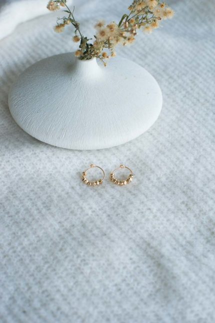 Boucles d’oreilles avec pièces lisses et martelées en laiton doré à l’or fin